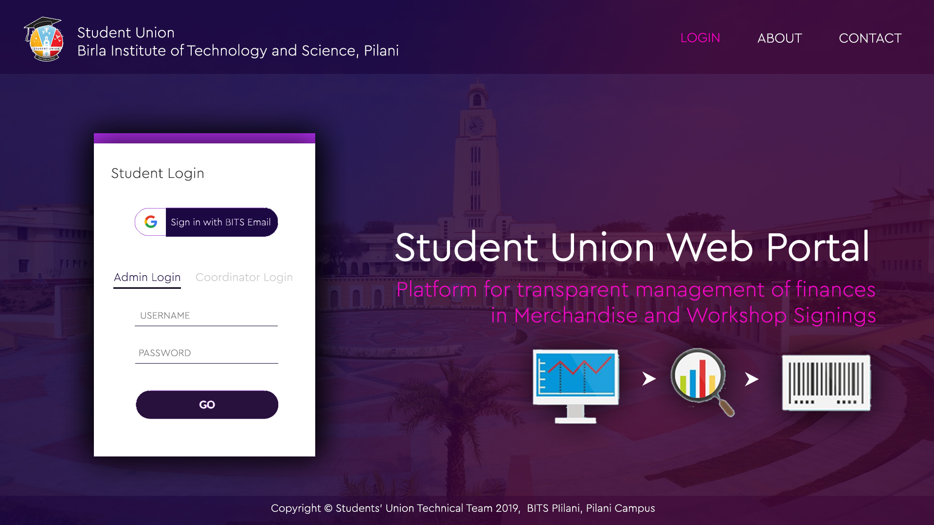 The official website of Sports Union, BITS Pilani using Django web framework with an Inventory Management System to keep a track of all the Sports Inventory available on campus and a payment gateway integrated with the website to accept donations from the Sports Alumni of the college.